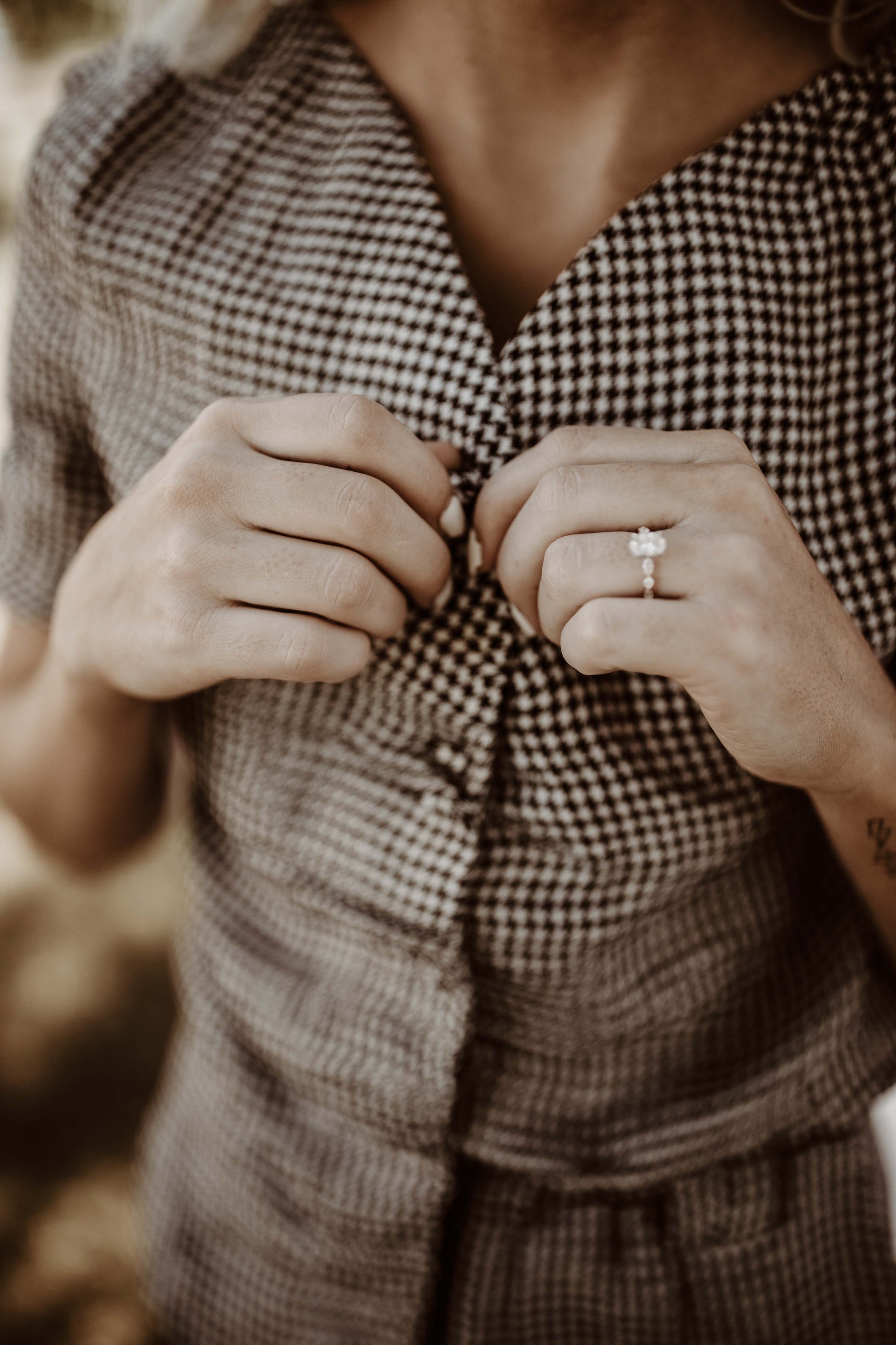 A Spinny Houndstooth linen spin on the version she had handmade and worn to my wedding back in 2010. This vintage number is delicate and delicious from it's sweetheart neckline and fabric covered buttons to it's impeccably placed ruching.