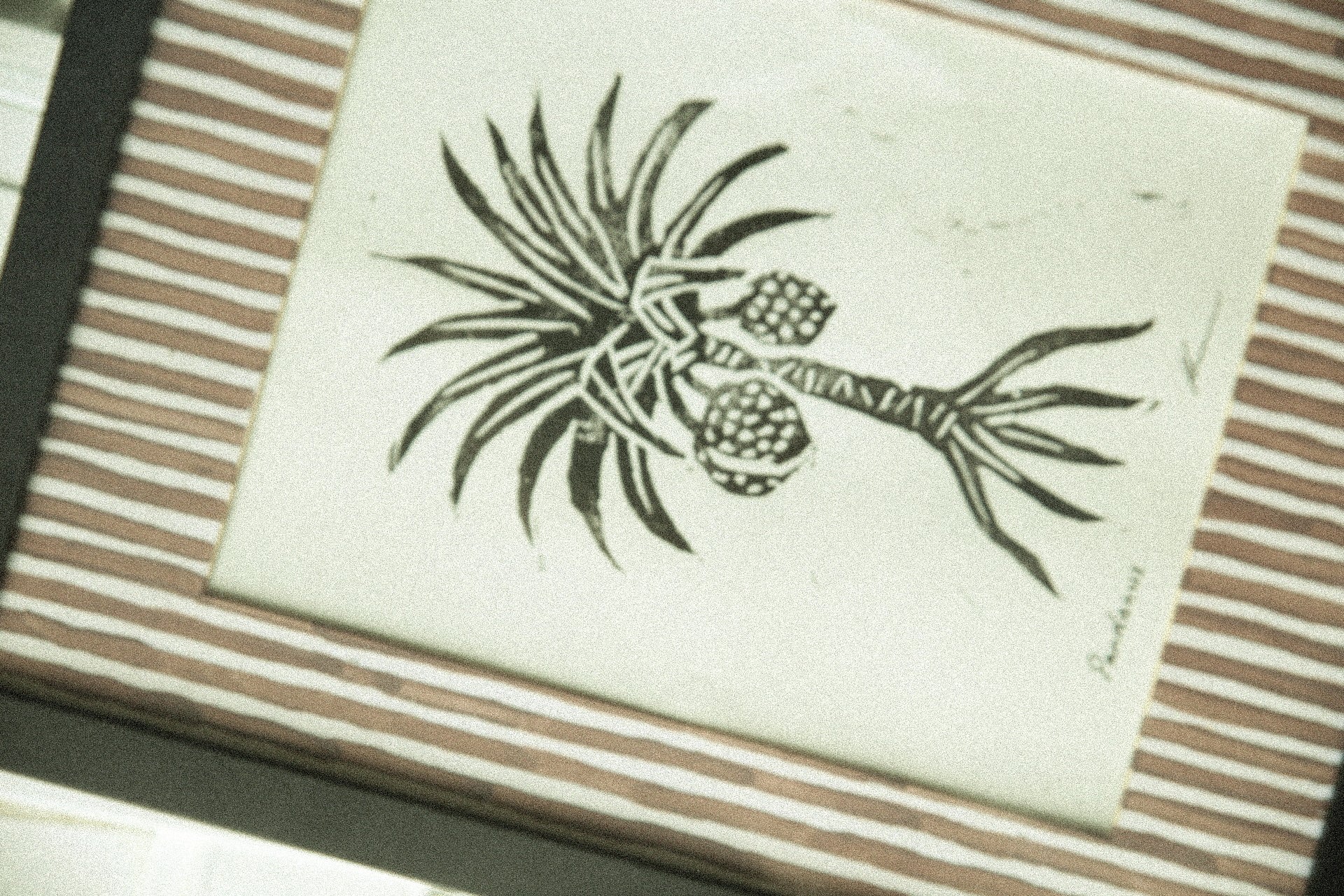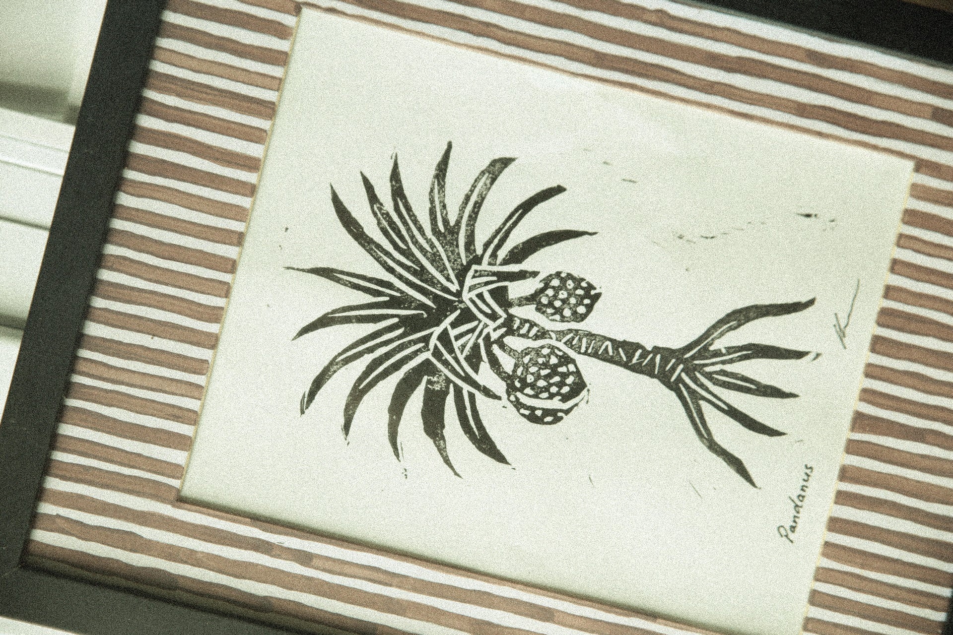 Hand-drawn, hand-carved and hand printed this print myself, all inspired by my fave: the Pandanus. She’s the unofficial marker of every magical spot in the Top End — the hot springs you only find by accident, the beaches where the air tastes like salt and mango, the hidden corners of the NT where the light hits different and time feels sweeter.