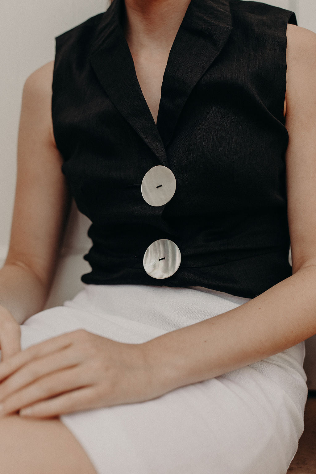A perfect example of why less is more. The classic cut of this feminine skirt will do all the talking while the buttery linen fabric will keep it light and simple.
